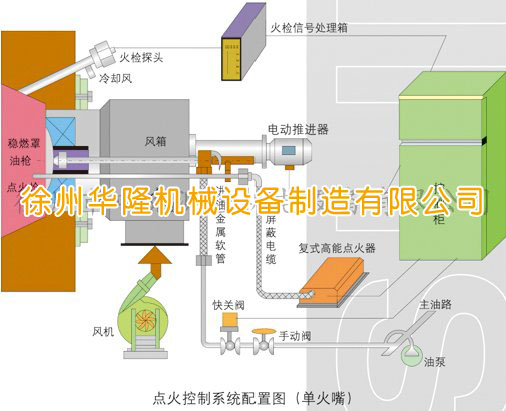 本系統由就地點火控制柜(SKDK)、高能點火裝置、火焰檢測裝置、油燃燒器推進執行器和球閥組成。點火柜按用戶要求可以采用繼電器或可編程控制器PLC為核心。系統可自動(接受集控室指令)或手動(現場就地)控制。點火設備按有關規范及設定程序進行鍋爐的點火操作,并給出各種工況的就在顯示和對集控室的信號反饋。 |